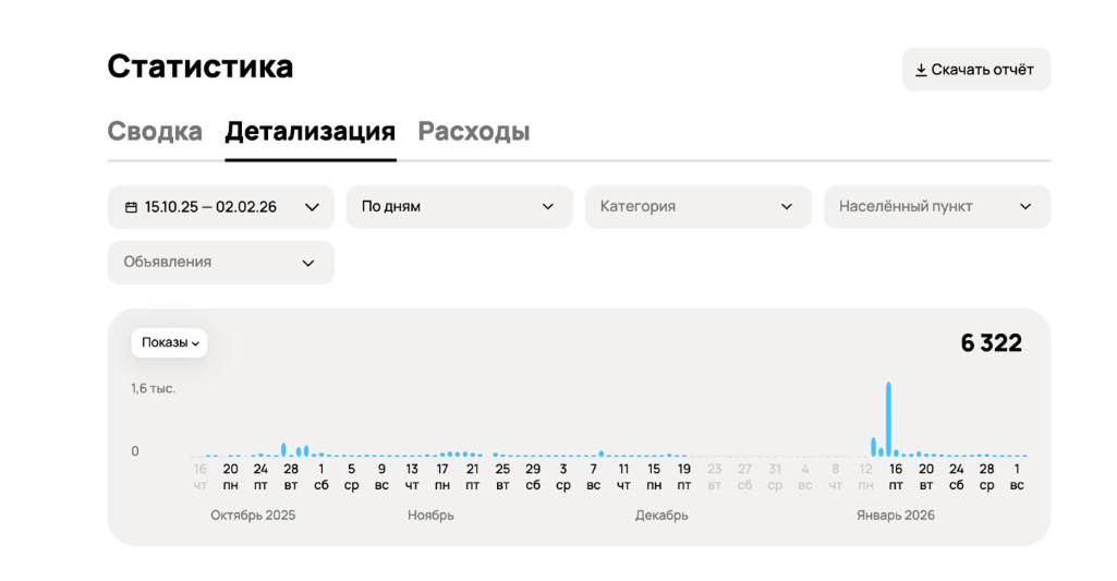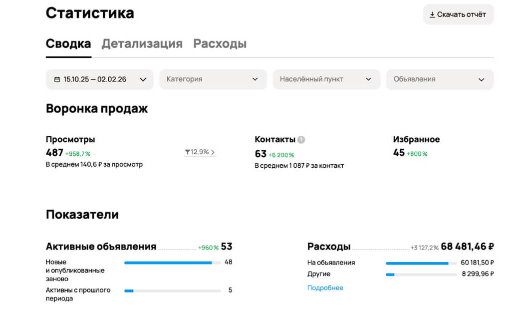За период с 15 октября по 2 февраля профиль по экспертизе на Авито показал следующие результаты: