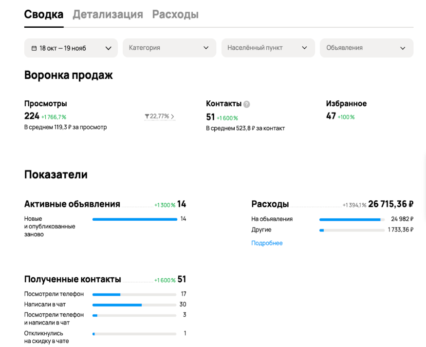 - Благодаря аналитике и пониманию целей, удалось плавно подстроить расходы и максимально эффективно использовать возможности бонусной программы софинансирования от Avito, что позволило вернуть часть потраченных средств.
